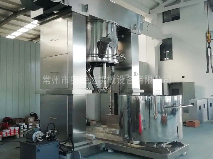 雙行星混合攪拌機是一種對多種液體、粉體進行混合攪拌、溶解、分散、均質的攪拌設備,分為減速電機、封蓋、行星架,高速、低速、活動刮板三軸,刮壁器、料桶、雙柱液壓升降系統、真空系統以及機架等構成。雙行星混合攪拌機能在真空下工作,可不斷的排出水分和其他的揮發物,因此,可作為脫氣釜使用。料桶可根據需要采用油、水循環加熱或冷卻;也可使用蒸汽加熱。加熱溫度通過控制面板上的溫度控制儀顯示。行星分散混合機(行星攪拌機)廣泛應用于高粘度電池、涂料、有機硅膠、油墨、染料、粘膠劑等。